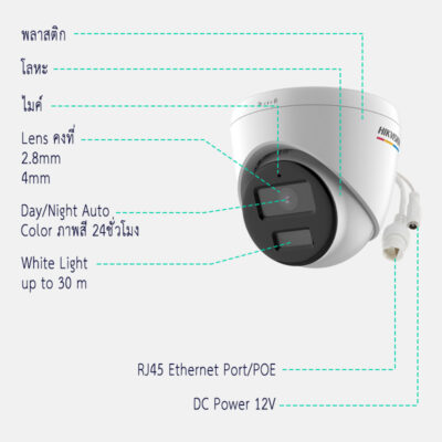 HIKVISION ColorVu Audio Turret แบบคงที่ Network Camera 2MP 2.8mm DS-2CD1327G0-LUF